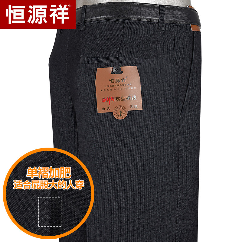 Hengyuanxiang trousers men loose middle-aged high-waisted straight autumn and winter thick section middle-aged single pleated plus hypertrophy size suit pants
