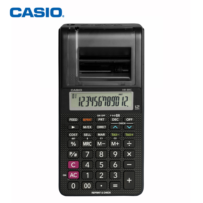 Original CASIOCASIO print calculator HR-8RC out of paper computer with paper machine