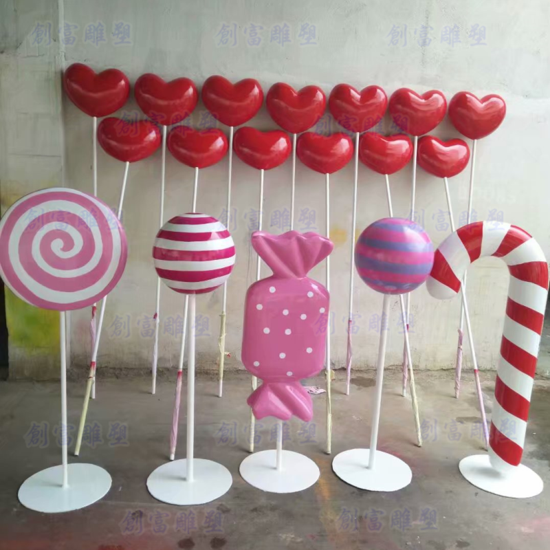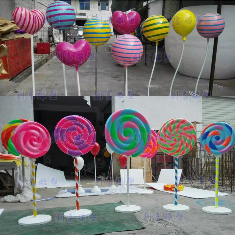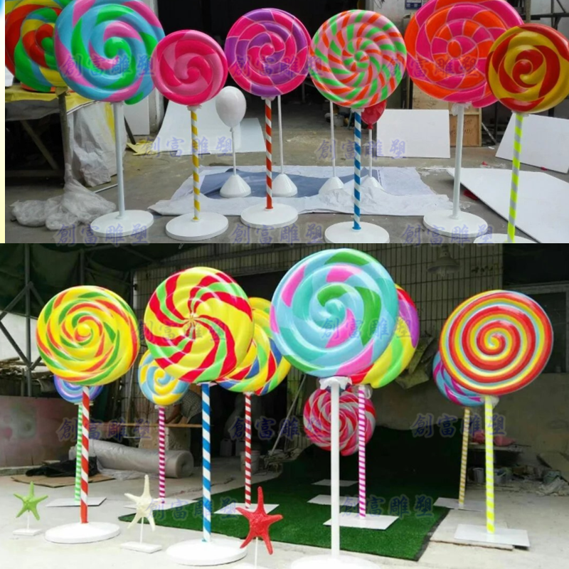 Simulation Candy Swing Piece Glass Fiber Stick Candy Sculpture Candy Wedding Props Outdoor Mall Garden Holiday Decorations