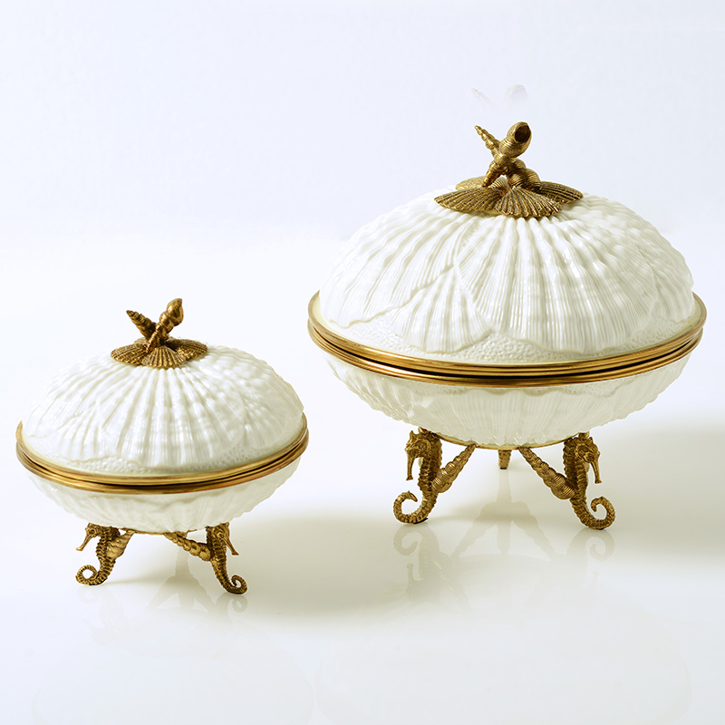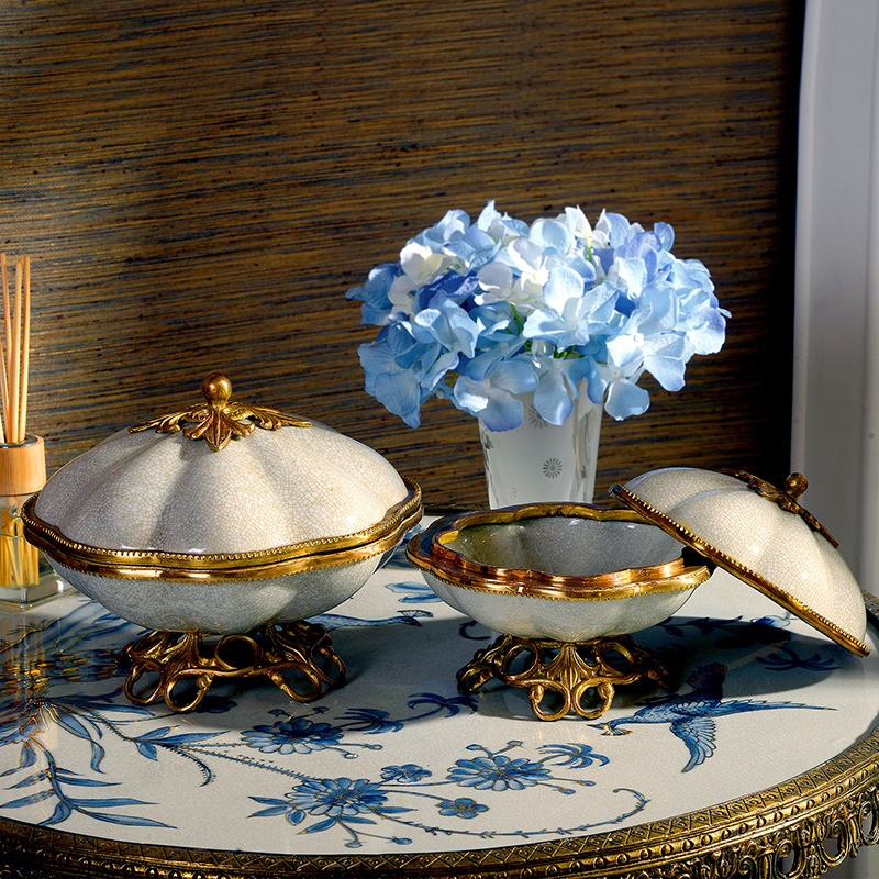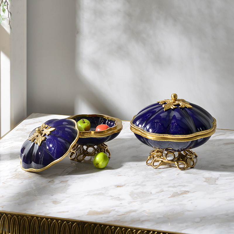 American luxury home living room jewelry decoration European blue and white porcelain copper with porcelain entrance jewelry box Ceramic decoration