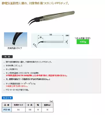 Japanese ENGINEER ENGINEER elbow tweezers PTZ-43 anti-static tweezers original ESD