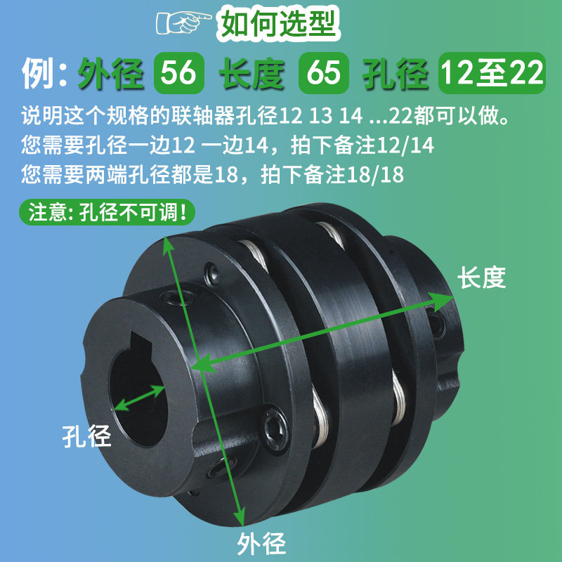 Outer diameter 56 length 65 hole range 12 to 22 outer diameter 68 length 78 hole range 15 to 25 outer diameter 82 length 99 hole range 20 to 30 outer diameter 94 length 110 hole range