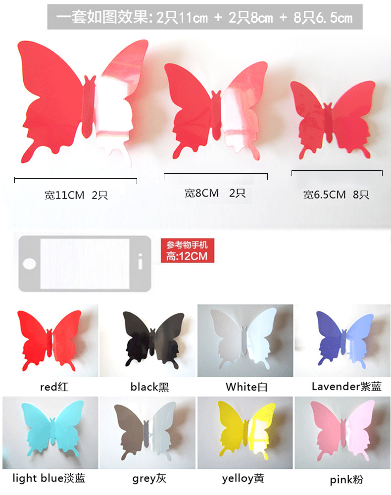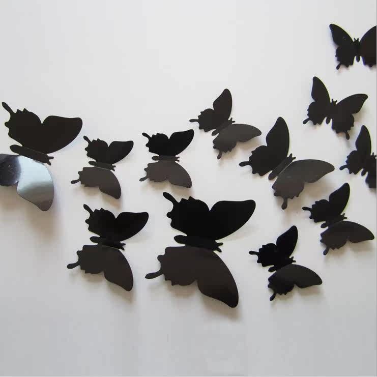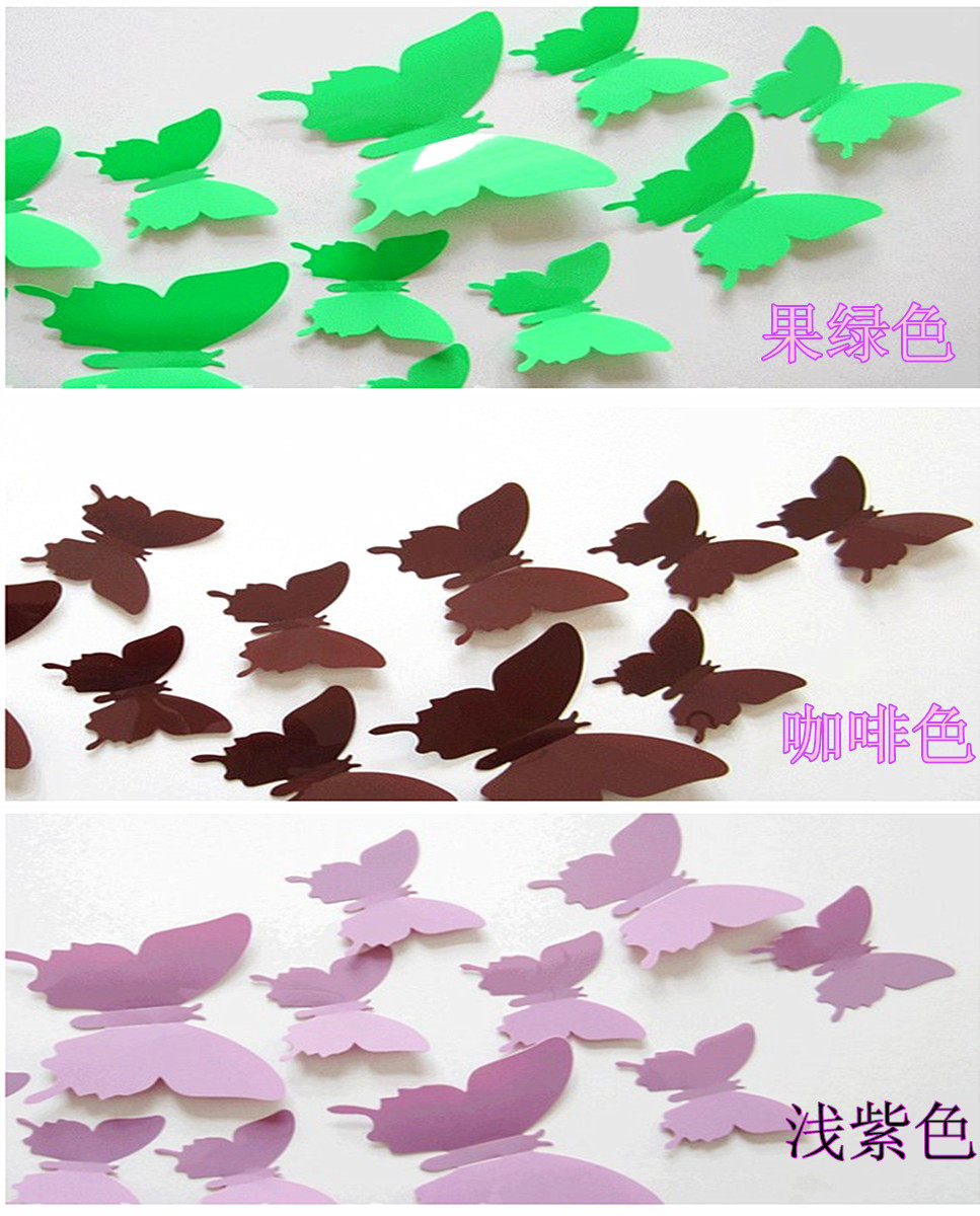 2 sets of special price 3D emulation butterfly pure color solid wall sticker creative bedroom living room TV wall stickup