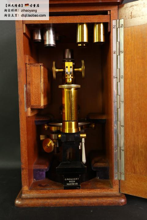 (Austria original)1898 C Reichert Wien antique copper microscope original mahogany case