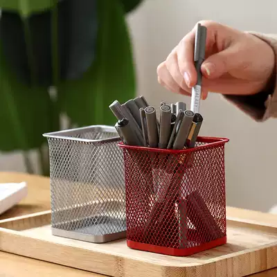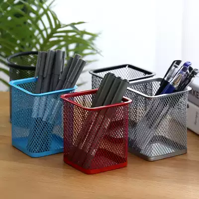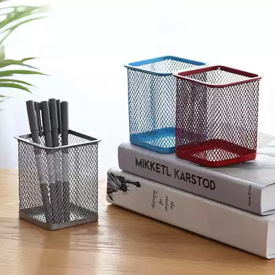 Creative color round grid metal multi-function pen holder Korean fashion desktop office supplies storage ornaments