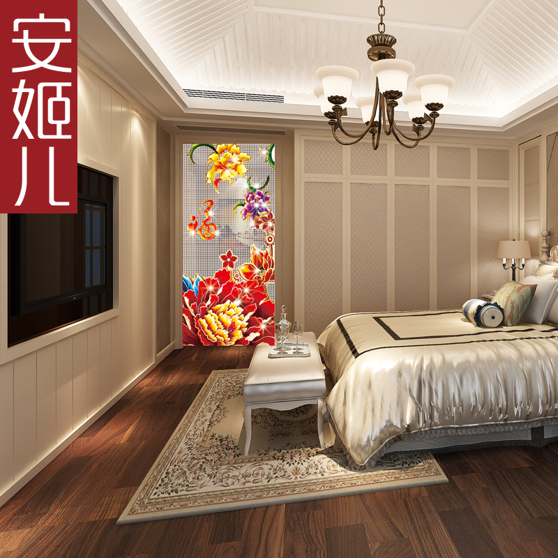 Anj Pediment Crystal Painting Curtain Pattern Peony Fu Crystal Pearl Curtain Door Curtain Partition Window Livingroom Genguan Makeup room hanging curtain
