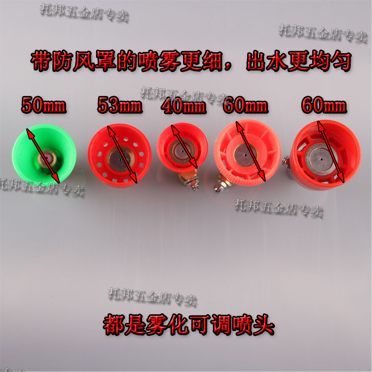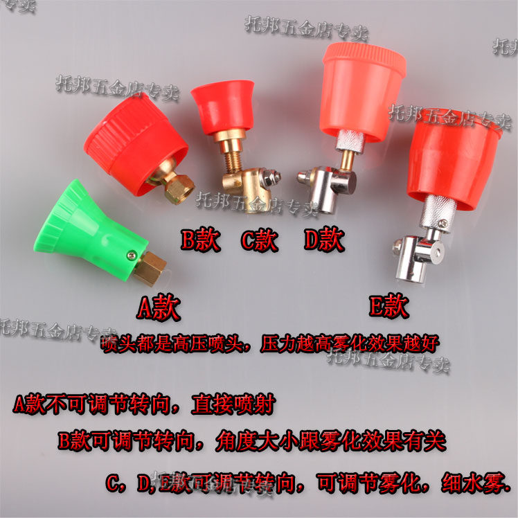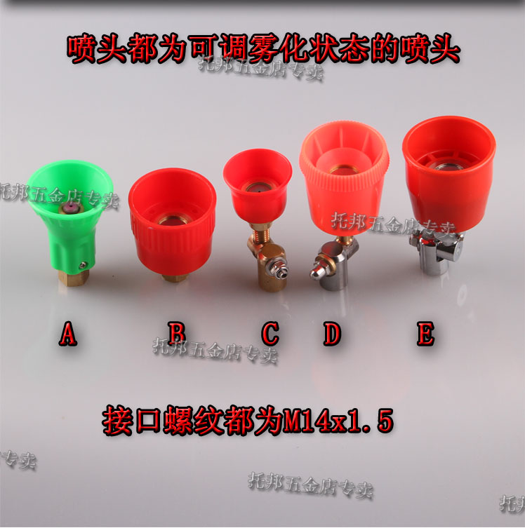 A Ceramic Nozzle (green cover) B-section axial nozzle C small air flow adjustable nozzle D Universal Adjustable Nozzle E large air flow adjustable spray head
