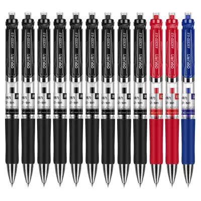 Delei 0 5mm press gel pen stationery student sign pen spring head pen 0 7mm black water pen office supplies dark blue black red pen business gel pen wholesale press pen