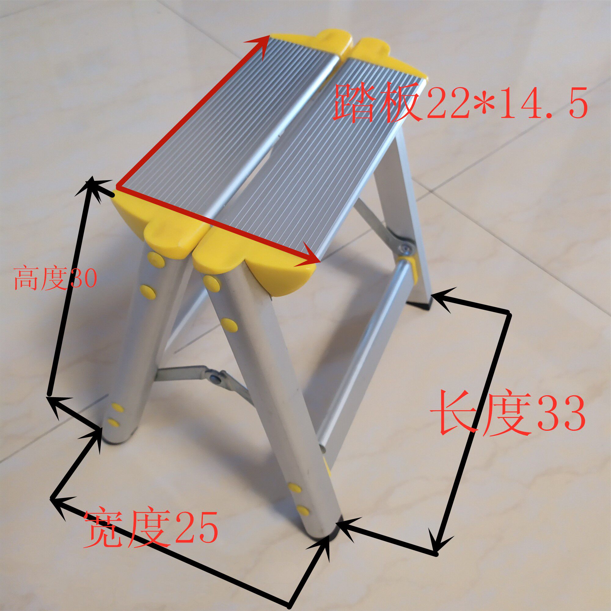 Thickened two-step aluminum alloy foldable double-sided ladder Three-step herringbone ladder ladder car wash table fishing stool one-step