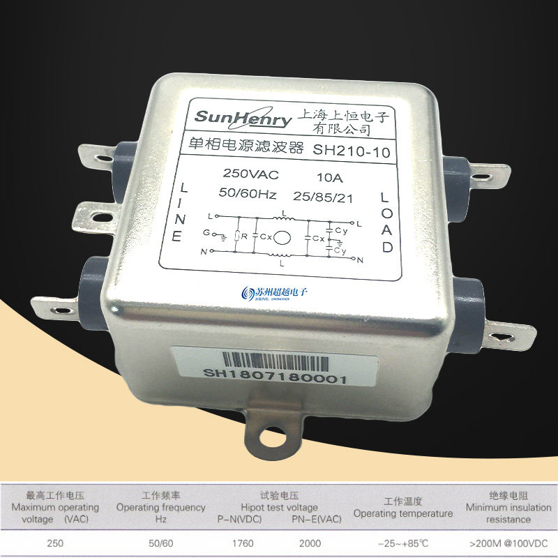 Shanghai Shangheng SH210-10 single phase single section AC power filter 10A 220VAC screw solder blade installation