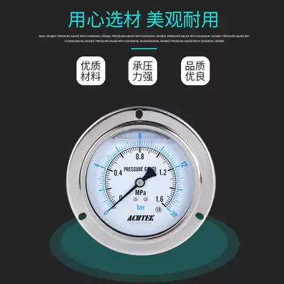 ACUTEK AXIAL EDGE 304 STAINLESS STEEL SHOCK-RESISTANT PRESSURE GAUGE YN100BF-ZT 1 6MPA M20*1 5