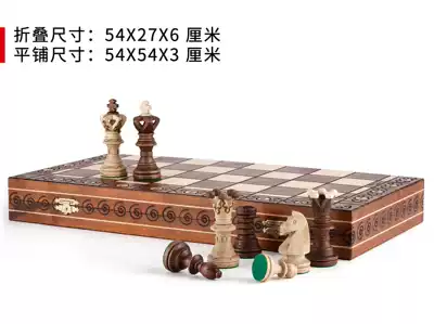 Whimsical Polish imported handmade solid wood high-end large portable folding children's chess gift