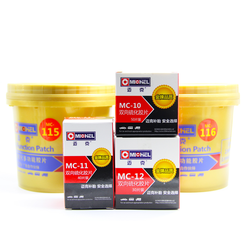 No. 10 (diameter 35mm) A box of 50 tablets No. 11 (diameter 45mm) A box of 40 tablets No. 12 (diameter 60mm) A box of 30 tablets No. 115 (diameter 46mm) A barrel of 100 tablets No. 116 (diameter 56mm) A barrel of 80 tablets of Mike vulcanizing agent Normal temperature type (250ml) Mike vulcanizing agent fast-drying type (250ml) Mike sealing glue (200cc) No. 10 film + room temperature type vulcanized glue No. 11 film + room temperature type vulcanized glue No. 12 film + Room temperature vulcanized glue No. 115 film + Room temperature vulcanized glue No. 116 film + room temperature vulcanized glue