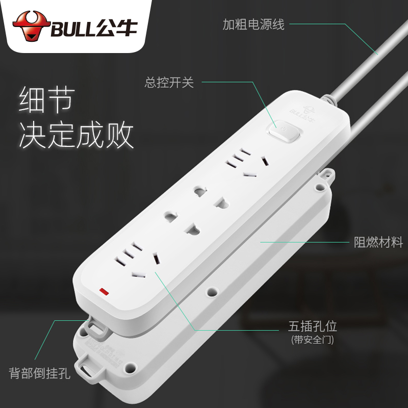 Extension cord Home plug-in version extension cord Bulls socket Gold Bull Red Bull Meddling Mechatronic Pool Sat Fork Electric Wipe Board Inserts