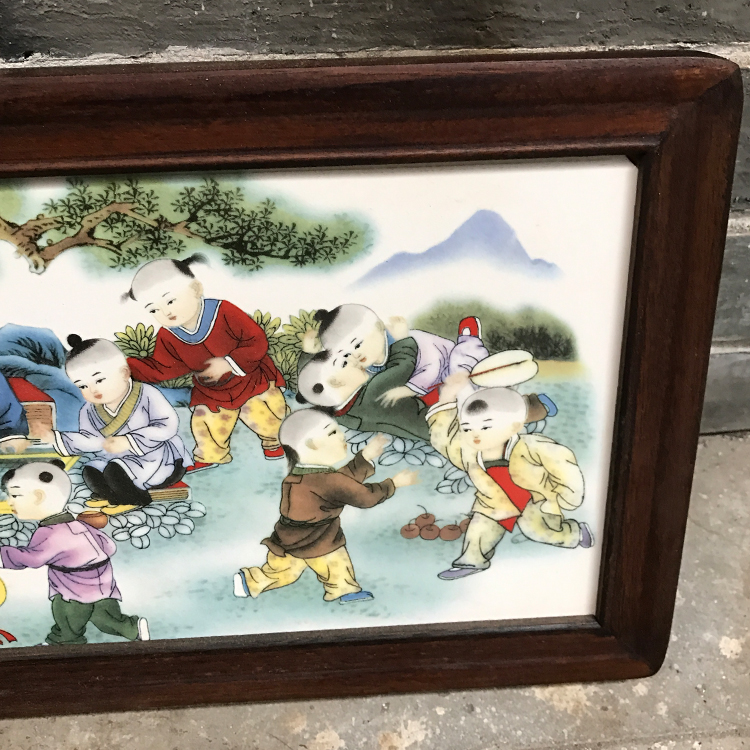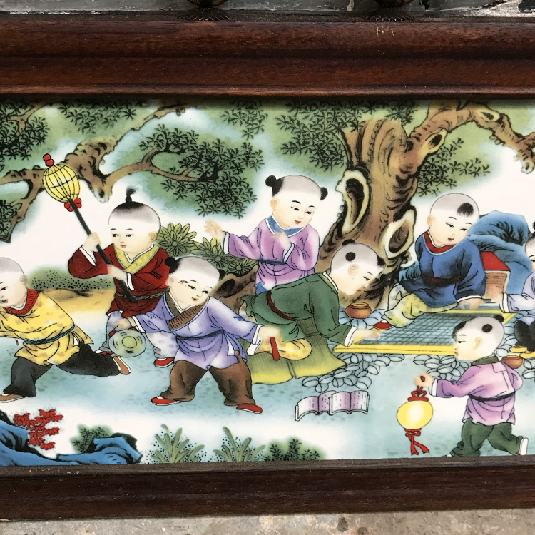 Antique Antique Jingdezhen ceramic plate painting Antique old living room decoration painting Hanging screen painting Boy frolic