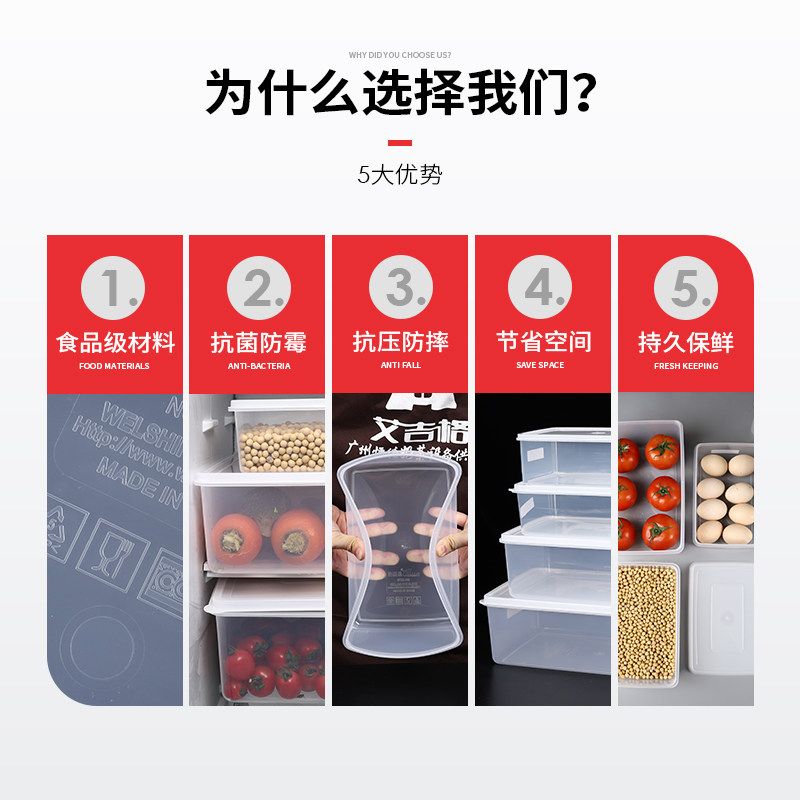 Huierxin fresh box Plastic box Transparent food box Rectangular refrigerator storage box Large capacity thickened with lid