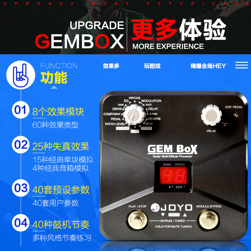 Zhuo Le JOYO electric guitar effector comprehensive effector with pedal wooden effector GEMBOX with drum machine