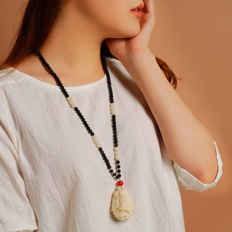 Fuyuu fur clothing chain autumn and winter ornaments decoration personality Bodhi root cabbage pendant female retro hangover necklace long version