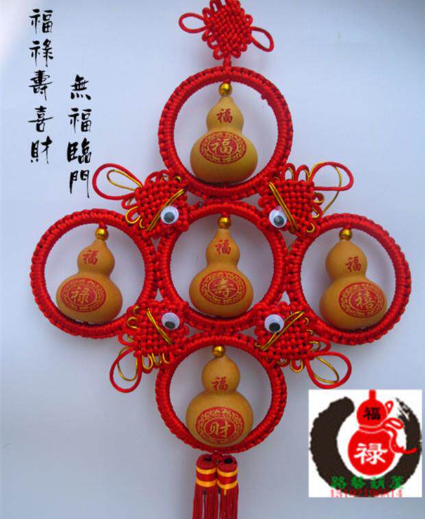 2019 Wufu Advent natural gourd family harmony Chinese knot hanging decoration Festive wedding home decoration