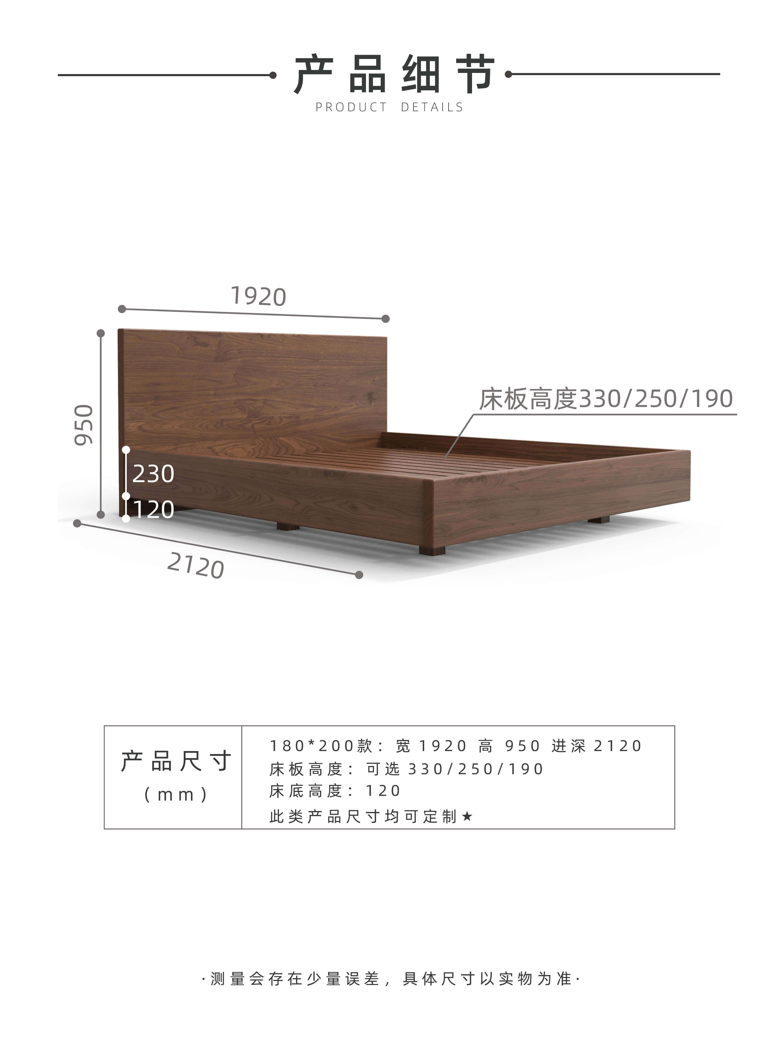 Black walnut bed board height 19 (recommended 30cm mattress) black walnut bed board height 25 (recommended 22cm mattress) black walnut bed board height 33 (recommended 14cm mattress) hard maple