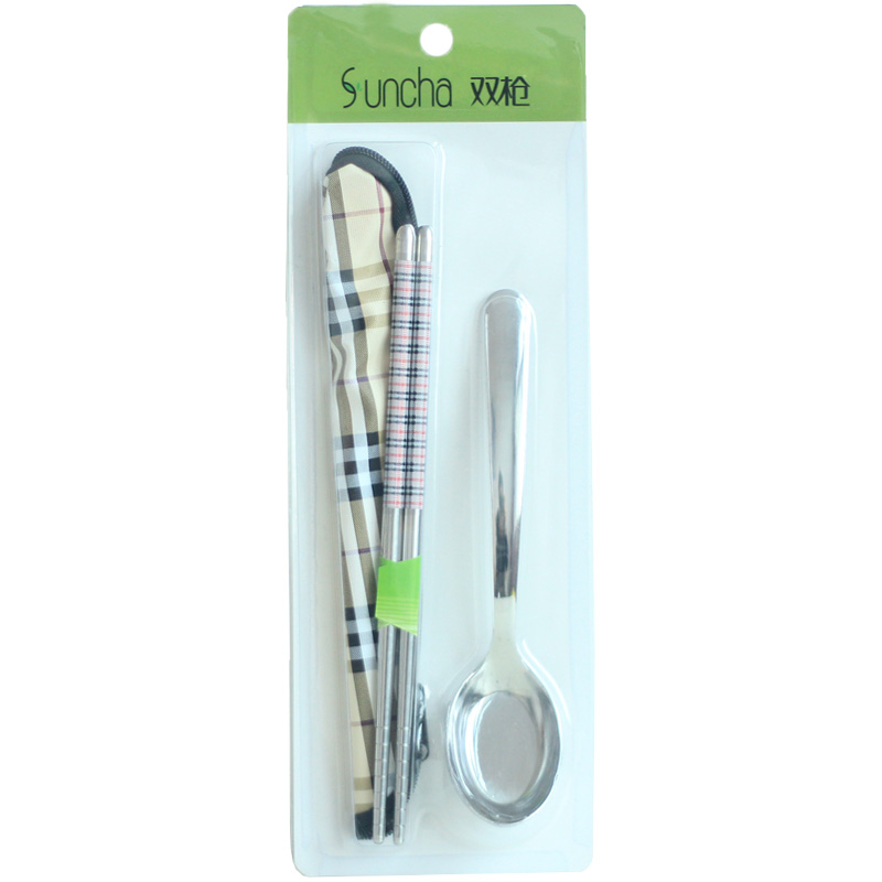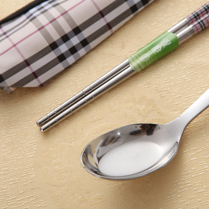 Twin-gun stainless steel chopsticks spoon portable tableware set three pieces for student adult Korea cute