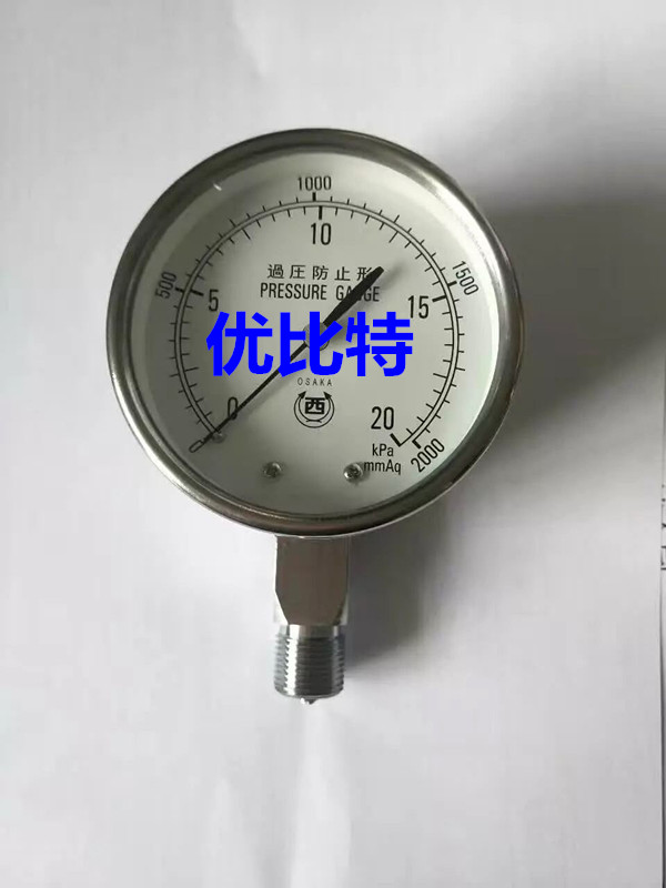 OSAKA West 0-10 pressure gauge 20 30 50KPA overpressure prevention shape Japan West brand stainless steel micro pressure gauge