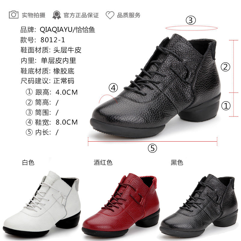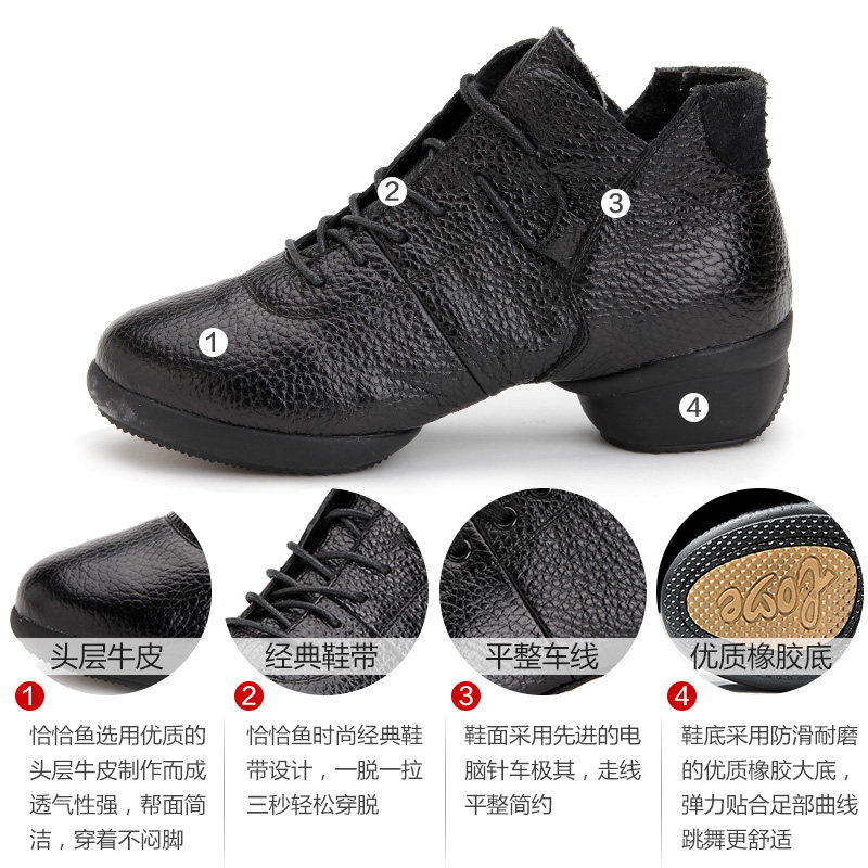 Precisely Fish Spring Autumn Season Bull Leather Dancing Shoes Non-slip Abrasion Resistant Square Dance Women's Shoes Jazz Dance Shoes Outdoor Practice Shoes