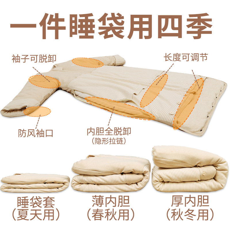 Baby sleeping bag four seasons universal baby spring and autumn sleeping bag pure cotton thickened autumn and winter children's anti-kick quilt can take off the bile