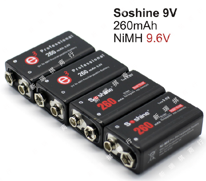 Soshine professional-grade 9V nickel hydrogen battery rechargeable battery capacity 260 milliaman 9 6V full 11 11 2V 1 section