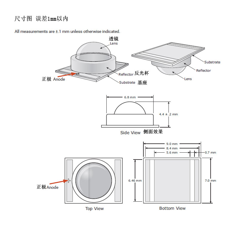 3W Q5 (positive white 6000K) 16mm plate 3W Q5 (positive white 6000K) 20mm plate 3W Q5 lamp bead without aluminium base plate