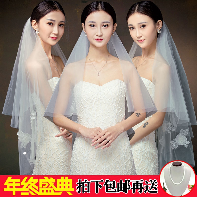 Veil Wedding Dress 2021 New Korean Bride Simple Versatile Veil Double Covering Net Red Photo Wedding Headwear