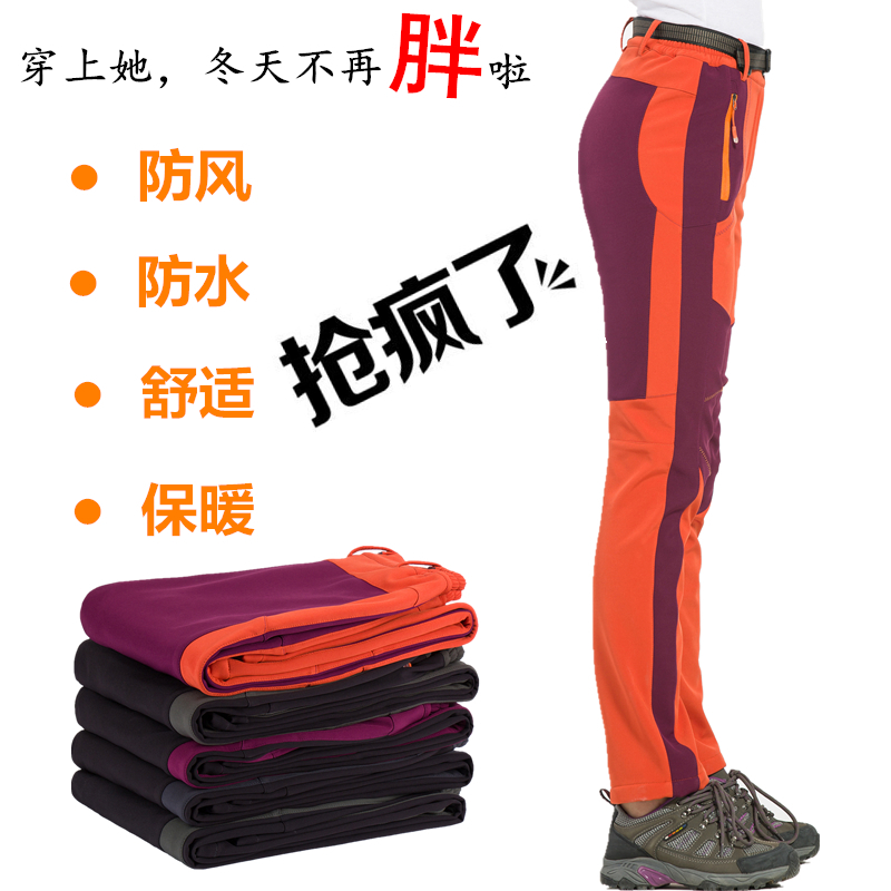 Jifeng Wolf Outdoor Autumn Winter Punching Pants Men And Women Plus Suede Pants Softshell Ski Pants Windproof Waterproof Mountaineering Pants
