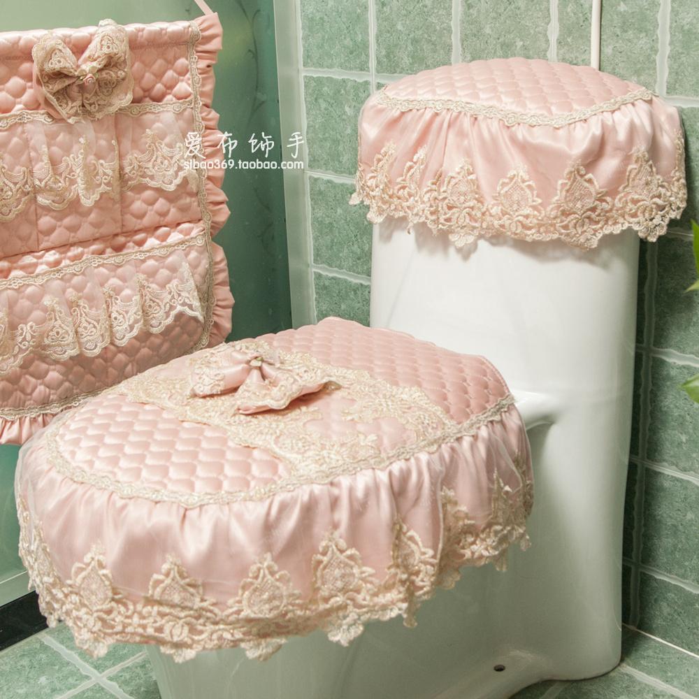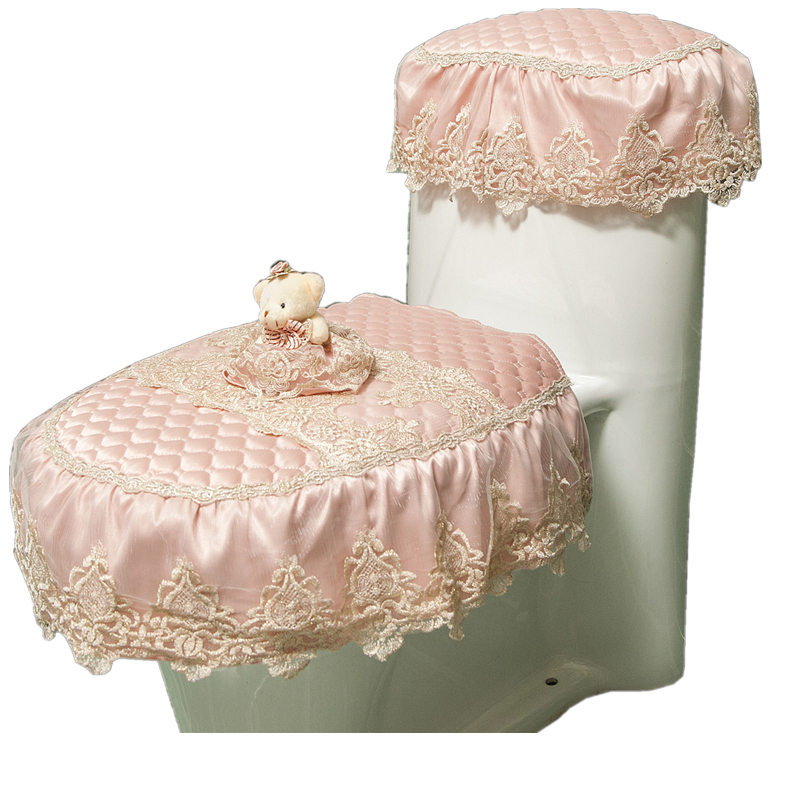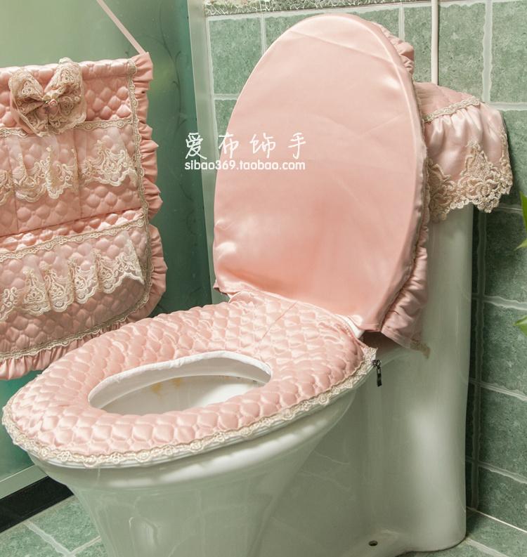 Bracelet type silk satin cloth sitting toilet cover with three sets of toilet cushion water tank cover toilet cover toilet cushion
