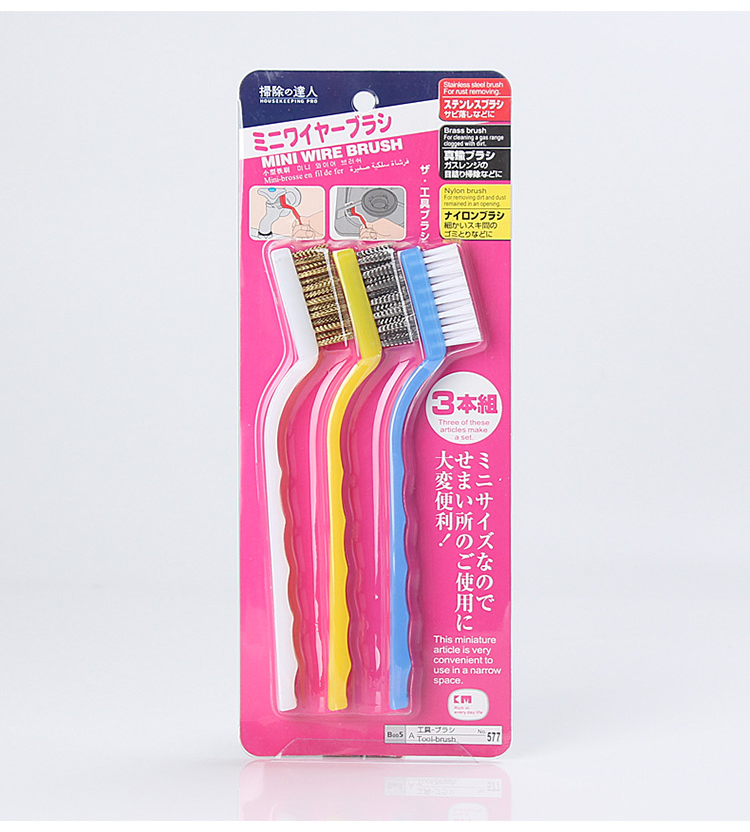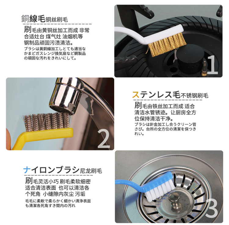 Japan KM Kitchen Powerful Decontamination Brush 3 brass wire steel wire brushed gas stove steel ring range hood slit brush