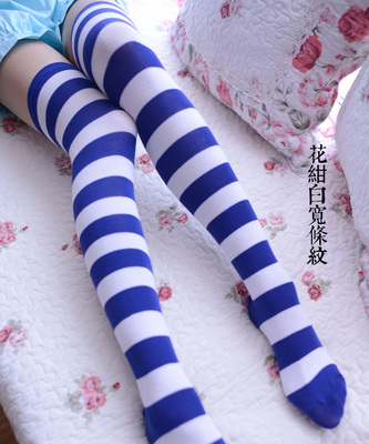 Day Ensemble Cute Cosplay Blue White Pink White Striped Long Silo Socks Overknee Socks High Silo Socks Socks Socks Limit Field