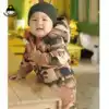 Korean version of the newborn baby velvet thickened warm and cold jumpsuit gloves foot cover baby out clothes autumn and winter