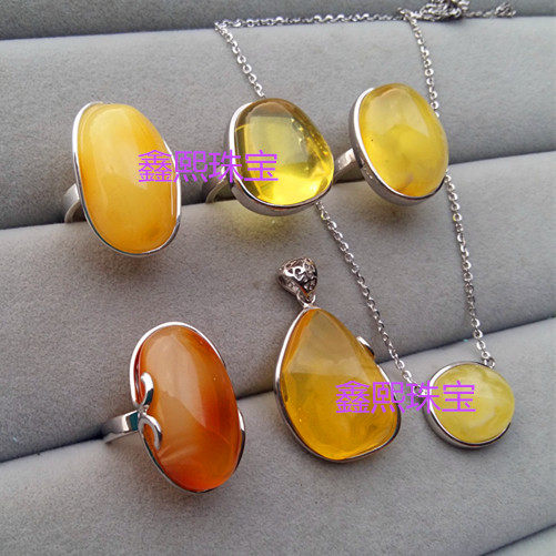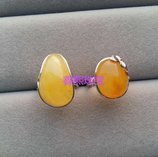 Wholesale Pure Natural Amber Wax Ring Pendant 925 silver European craft single-handedly source also set to do