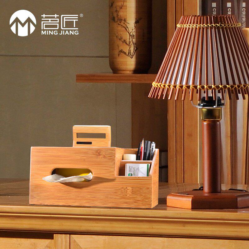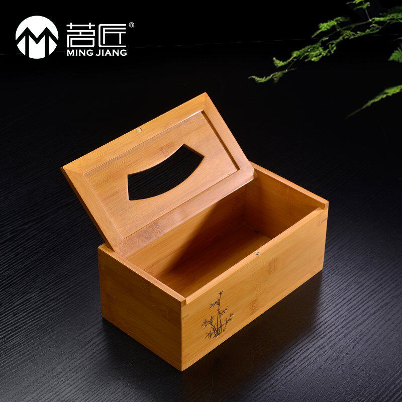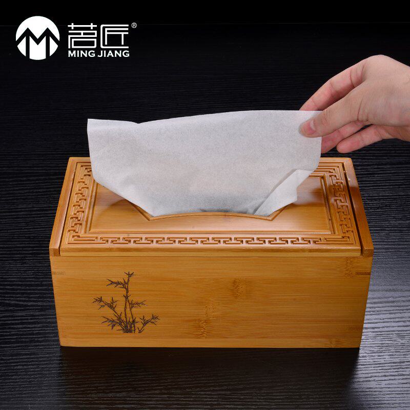 Drinking artisan bamboo solid wood modern creative paper towel box Living room Home toilet paper box minimalist remote control containing box