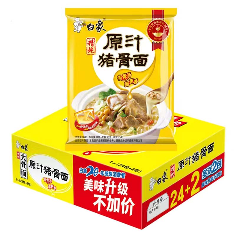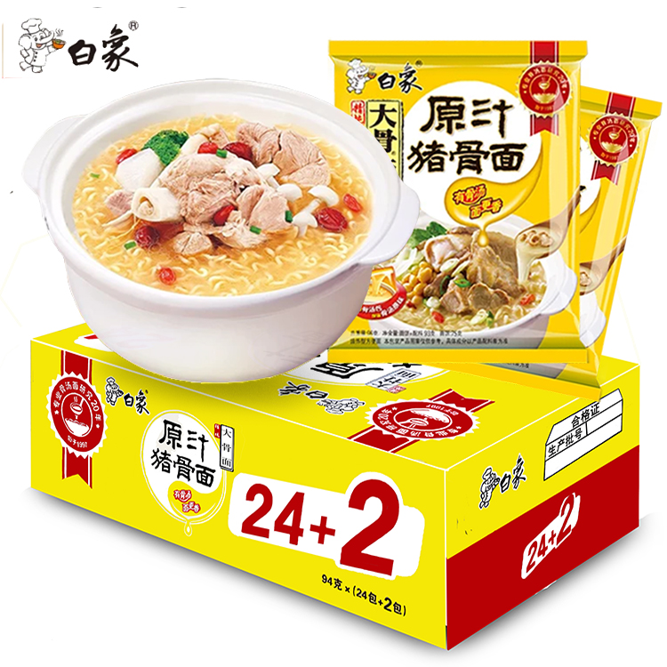White elephant instant noodles stewed big bone noodles raw juice pig bone noodles 94g * 26 bags of instant instant noodles whole box
