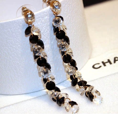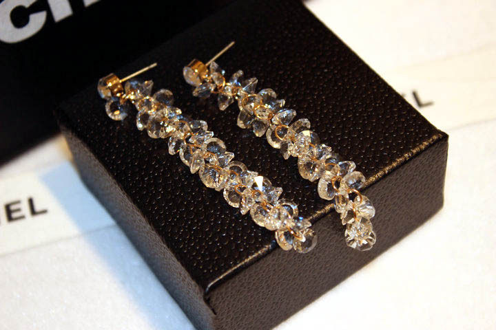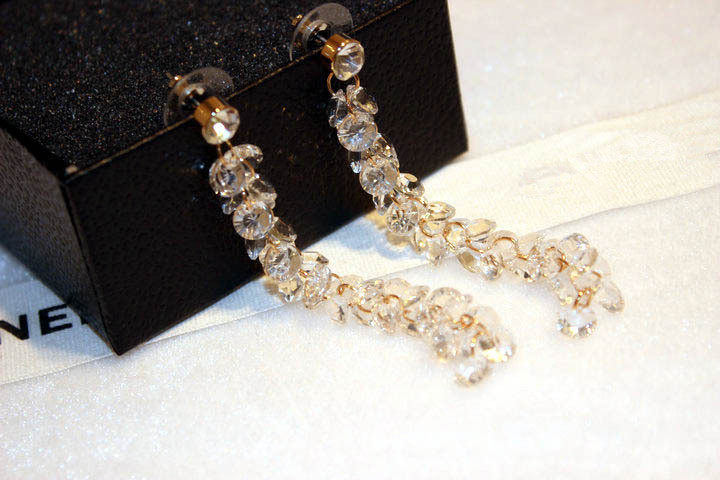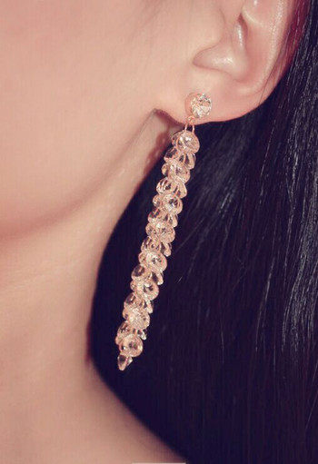 Korean Temperament Brief Stream Suear Pendant Women's Long Version Crystal String Pearl Earrings Temperament Sensual Earrings