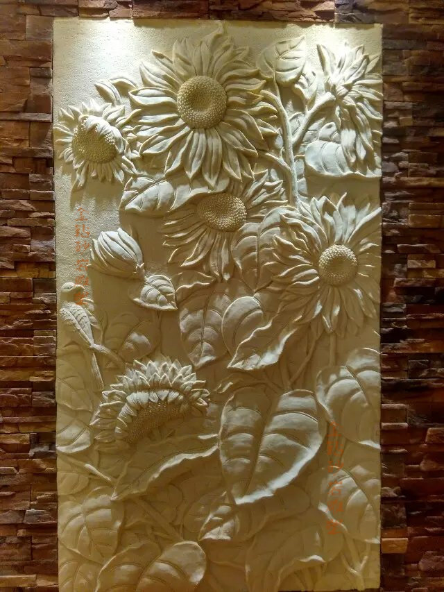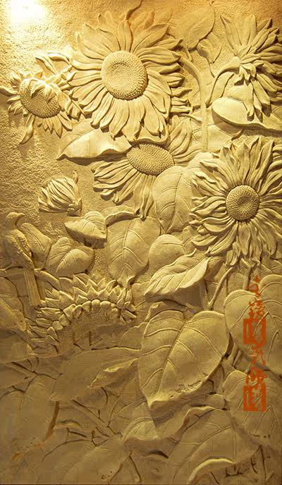 Sandstone relief mural sunflower plant carving mural background porch decoration indoor and outdoor decorative relief
