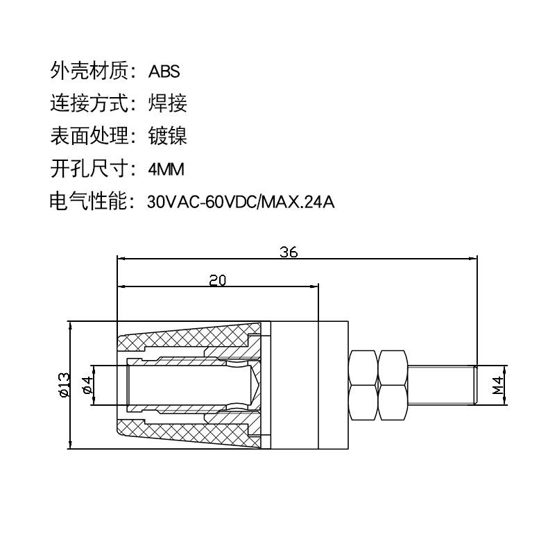 Banana plug socket Banana socket 4mm speaker terminal terminal terminal box Copper high current 15A