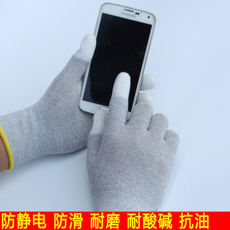 pu coating coated finger carbon fiber anti-static dust-free thin nylon electronic work gloves mobile phone touch screen gloves