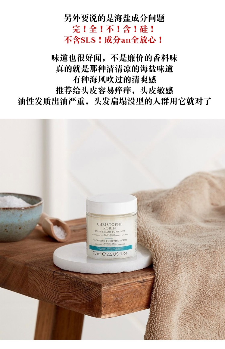 Sea salt to soothe the cleansing cream of the scalp