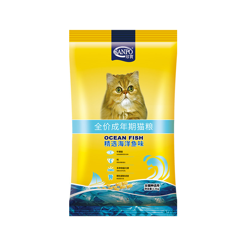Treasure selection of marine fish adult stray cat food fish meat flavor 1 5kg*3 packs of general-purpose cat food 3 catties 9 catties