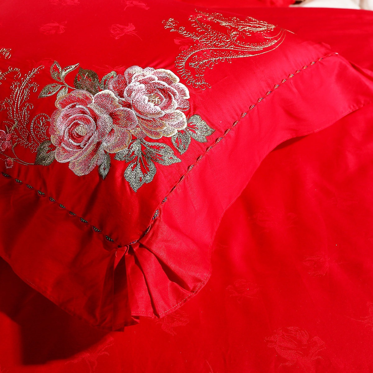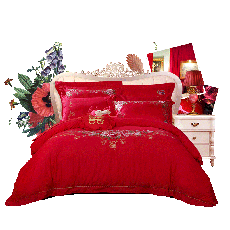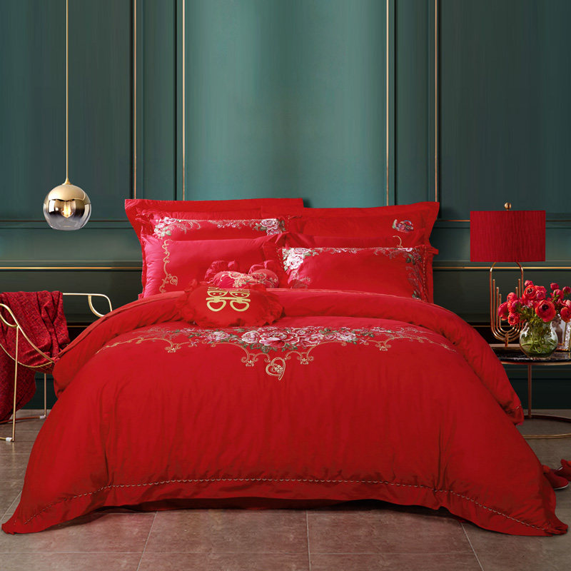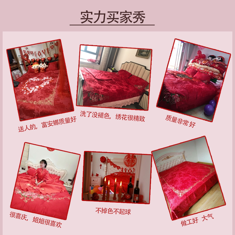 Fuanna red pure cotton wedding four-piece set newlywed big red six-piece set wedding escort wedding bed full set