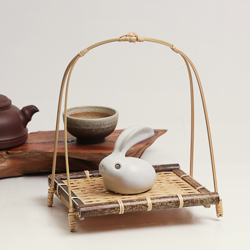 Bamboo hanging basket tea ceremony storage basket fruit plate tea snack basket dried fruit basket hand-removable bamboo basket