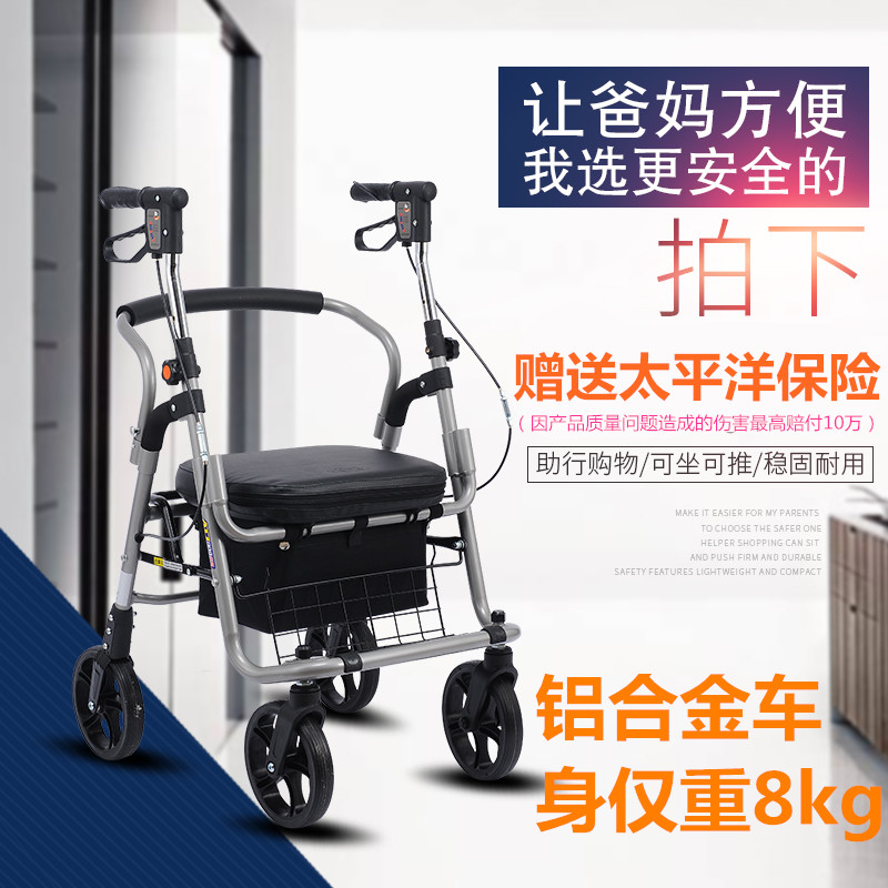 Elderly shopping cart The elderly trolley buys vegetables to help the driving car aluminum alloy scooter four-wheel can sit folding wheelchair