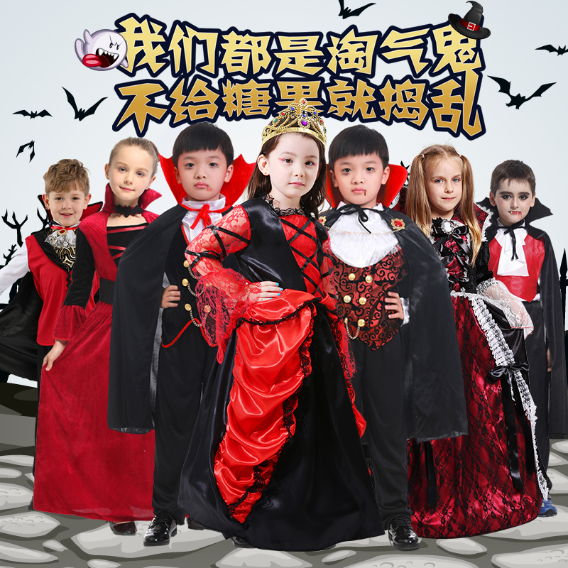 Halloween children's clothing vampire clothes to serve cosplay makeup prom male girl witch suit-Taobao