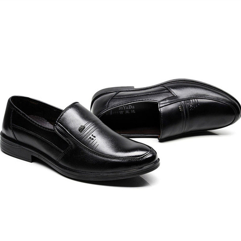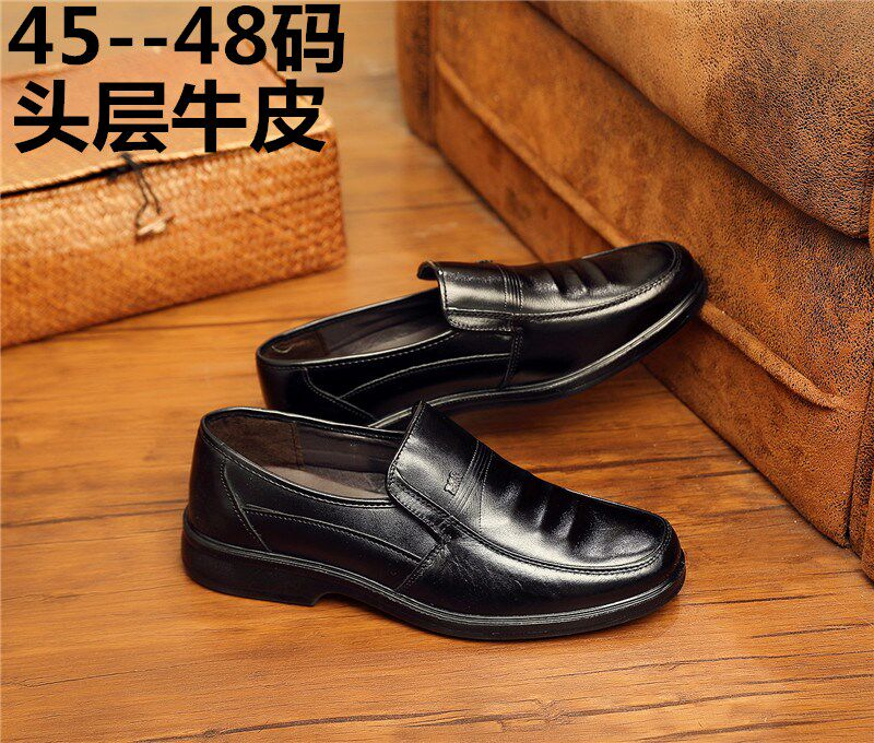 Bull Pitt Big Leather Shoes Man Genuine Leather Autumn Winter Middle Aged Dad Shoes Large Size Yard Plus Suede Men's Shoes Thick Bottom Business Casual